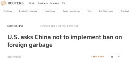 據(jù)路透社報(bào)道,會(huì)議上美方代表表示,中國對(duì)于可回收品的進(jìn)口限制已經(jīng)極大地中斷了全球廢金屬供應(yīng)鏈的運(yùn)轉(zhuǎn),要求中國取消對(duì)“洋垃圾”的進(jìn)口禁令。