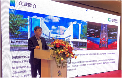 作為國家科技進步獎獲得者、行業(yè)國家標準第一起草單位,濟南恒譽環(huán)保科技股份有限公司攜有機危廢熱解資源化利用解決方案亮相論壇,公司副總經(jīng)理楊景智作了題為《有機危廢熱解處置技術(shù)、裝備及市場應(yīng)用案例》的專題報告。