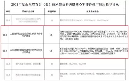 近日,山東省工業(yè)和信息化廳公示了《2021年度山東省首臺(tái)(套)技術(shù)裝備和關(guān)鍵核心零部件推廣應(yīng)用指導(dǎo)目錄》。濟(jì)南恒譽(yù)環(huán)保科技股份有限公司“工業(yè)連續(xù)化含油污泥熱裂解技術(shù)成套生產(chǎn)裝備”、 “工業(yè)連續(xù)化廢鹽資源化利用熱裂解技術(shù)及裝備”2項(xiàng)產(chǎn)品成功入選。