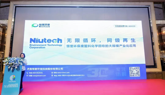 恒譽(yù)環(huán)保以“《無限循環(huán),同級再生——恒譽(yù)環(huán)保廢塑料化學(xué)回收的大規(guī)模產(chǎn)業(yè)化應(yīng)用》”為本次大會帶來主題演講,當(dāng)前我國每年產(chǎn)生6000萬噸廢舊塑料,不適用物理回收的低值廢塑料占比46%、回收率不足10%,大多采用焚燒填埋處理,如果其中50%采用化學(xué)循環(huán)技術(shù),相當(dāng)于低成本開發(fā)了一個(gè)6000萬噸的城市油田。針對行業(yè)的痛點(diǎn)問題,恒譽(yù)環(huán)保通過多年的技術(shù)積累與項(xiàng)目實(shí)踐,自主研發(fā)“工業(yè)連續(xù)化智能廢塑料熱解技術(shù)及成套生產(chǎn)線”,解決了大型熱解生產(chǎn)線應(yīng)用過程中出現(xiàn)的“裂解系統(tǒng)結(jié)焦、進(jìn)出料難以動(dòng)態(tài)密封、產(chǎn)出物聚合”等多項(xiàng)世界性難題,能夠?qū)鹘y(tǒng)物理技術(shù)難以處理的混合廢塑料、海洋廢塑料、醫(yī)療廢塑料轉(zhuǎn)化為品質(zhì)穩(wěn)定的再生能源產(chǎn)品,后續(xù)通過深加工可作為生產(chǎn)新塑料的化工原料,真正實(shí)現(xiàn)了同級化、高值化利用。既減少了對化石能源的依賴,又降低了碳排放和環(huán)境污染,為全球廢塑料污染治理提供了可驗(yàn)證、可復(fù)制、可推廣的成熟方案,憑借突出的創(chuàng)新性、先進(jìn)性、示范性,該套技術(shù)裝備榮獲中國科技領(lǐng)域最高獎(jiǎng)項(xiàng)“國家科學(xué)技術(shù)進(jìn)步獎(jiǎng)”