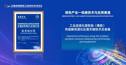 2024年9月公司產(chǎn)品“工業(yè)連續(xù)化廢輪胎(橡膠)熱裂解資源化處置關(guān)鍵技術(shù)及裝備”榮獲國(guó)家工信部國(guó)際經(jīng)濟(jì)技術(shù)合作中心主辦的 2024 金磚國(guó)家工業(yè)創(chuàng)新大賽“國(guó)際優(yōu)秀獎(jiǎng)”。